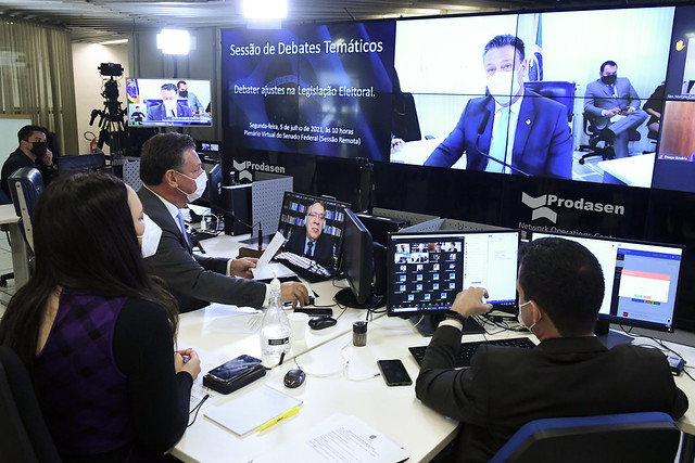 Sessão de debates temáticos, realizada a partir da sala de controle da Secretaria de Tecnologia da Informação (Prodasen), destinada a debater ajustes na Legislação Eleitoral.