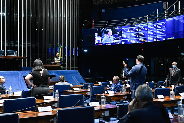 Plenário do Senado Federal durante sessão deliberativa ordinária semipresencial. Ordem do dia.