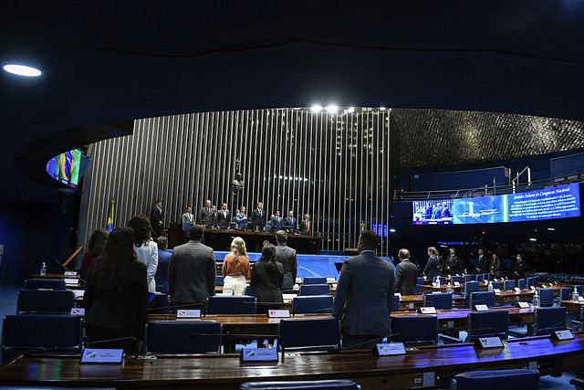 Plenário do Senado Federal durante sessão deliberativa ordinária semipresencial. Ordem do dia.