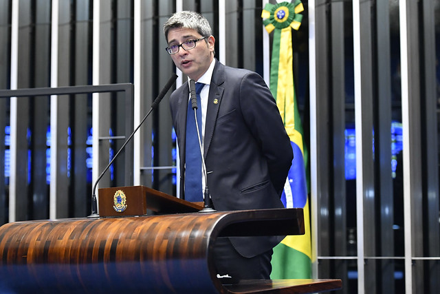 À tribuna, em discurso, senador Carlos Portinho (PL-RJ).
