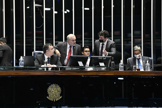 Plenário do Senado Federal durante sessão deliberativa extraordinária semipresencial.