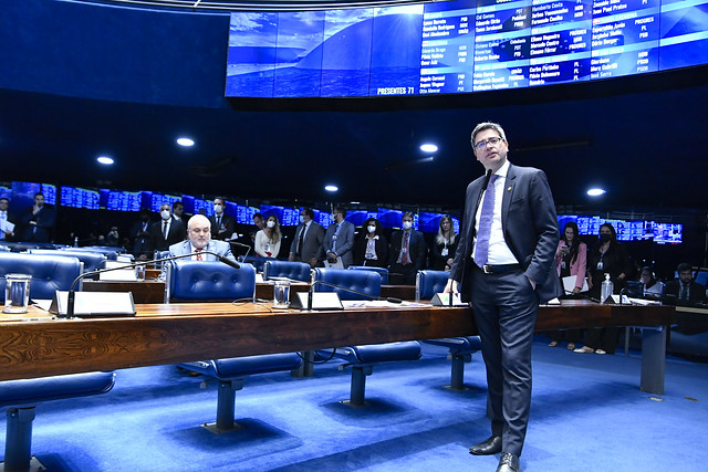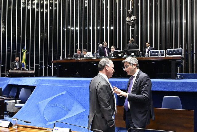 Plenário do Senado Federal durante sessão deliberativa extraordinária semipresencial.