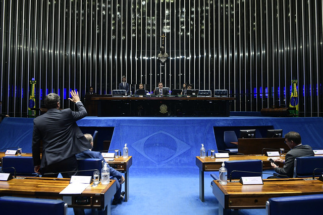 Plenário do Senado Federal durante sessão especial destinada ao comparecimento do presidente do Banco Central do Brasil, a fim de apresentar relatório de inflação e relatório de estabilidade financeira, explicando as decisões tomadas no semestre anterior, nos termos do art. 11 da Lei Complementar nº 179, de 24 de fevereiro de 2021.