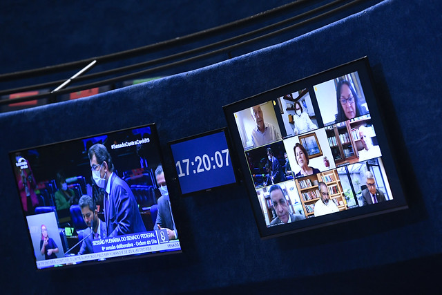 Plenário do Senado Federal durante sessão deliberativa ordinária semipresencial.