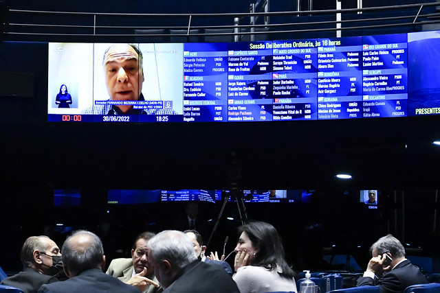 Plenário do Senado Federal durante sessão deliberativa ordinária semipresencial.