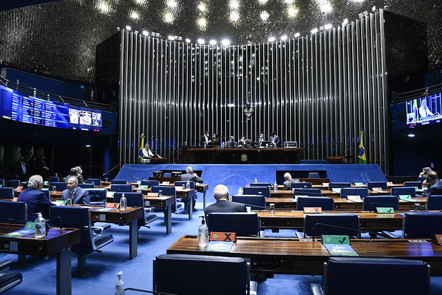 Plenário do Senado Federal durante sessão deliberativa ordinária semipresencial.