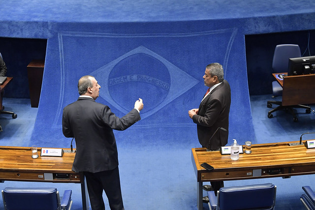 Plenário do Senado Federal durante sessão deliberativa extraordinária semipresencial.