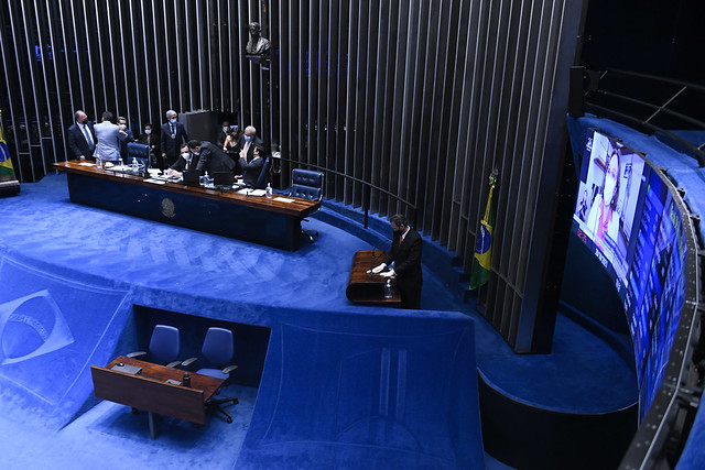 Plenário do Senado Federal durante sessão deliberativa ordinária semipresencial.
