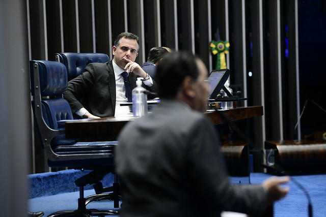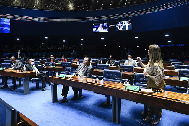 Plenário do Senado Federal durante sessão deliberativa extraordinária semipresencial.