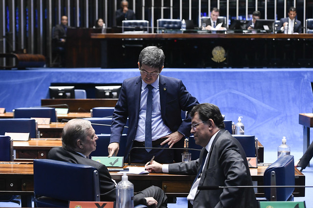 Plenário do Senado Federal durante sessão deliberativa ordinária semipresencial.