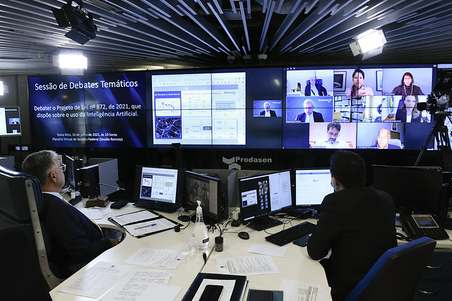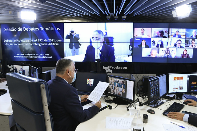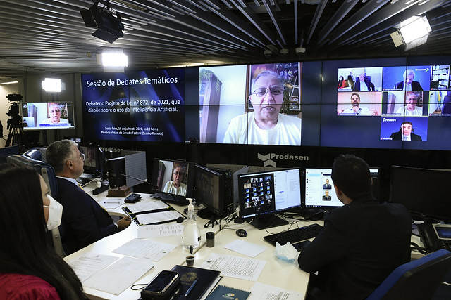 Sessão de debates temáticos, realizada a partir da sala de controle da Secretaria de Tecnologia da Informação (Prodasen), para debater o Projeto de Lei nº 872, de 2021, que dispõe sobre o uso da Inteligência Artificial (IA).