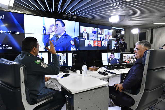 Sessão especial remota, realizada a partir da sala de controle da Secretaria de Tecnologia da Informação (Prodasen), destinada a comemorar o Dia do Bombeiro Militar.
