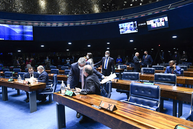 Plenário do Senado Federal durante sessão deliberativa ordinária semipresencial.