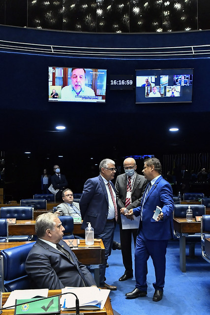 Plenário do Senado Federal durante sessão deliberativa extraordinária semipresencial.