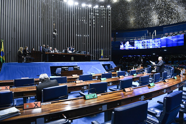 Plenário do Senado Federal durante sessão deliberativa ordinária semipresencial.