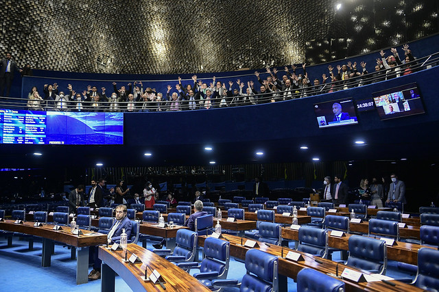 Plenário do Senado Federal durante sessão deliberativa extraordinária semipresencial.