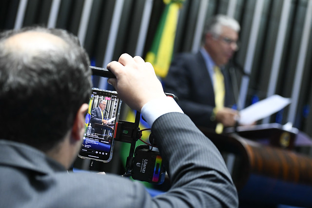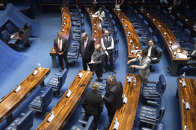 Plenário do Senado Federal durante sessão deliberativa extraordinária semipresencial.