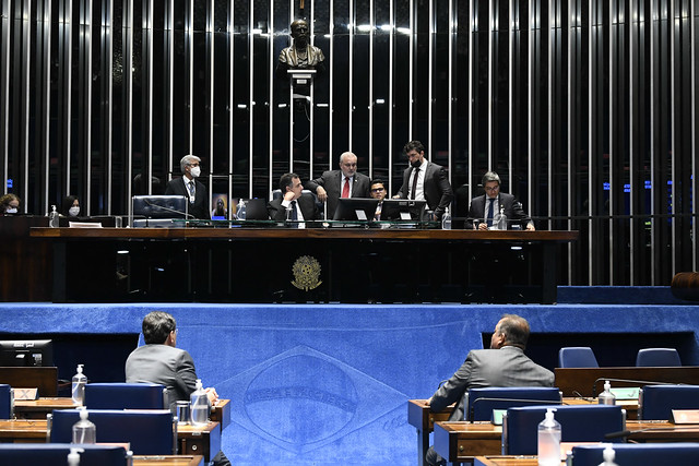 Plenário do Senado Federal durante sessão deliberativa extraordinária semipresencial.