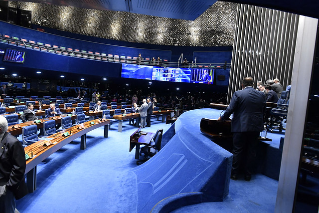 Plenário do Senado Federal durante sessão deliberativa ordinária semipresencial.