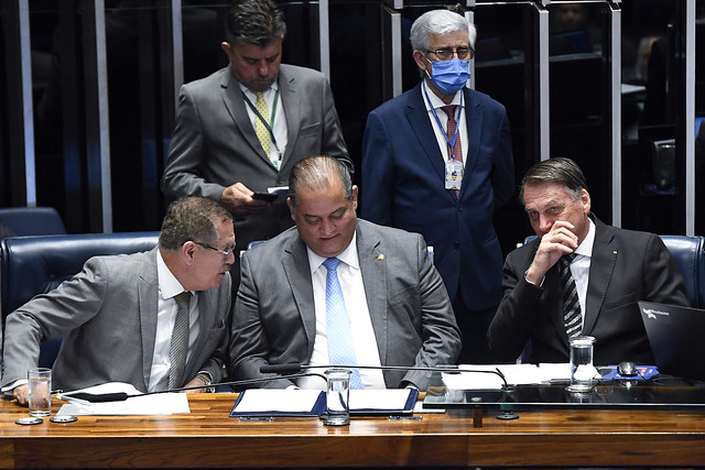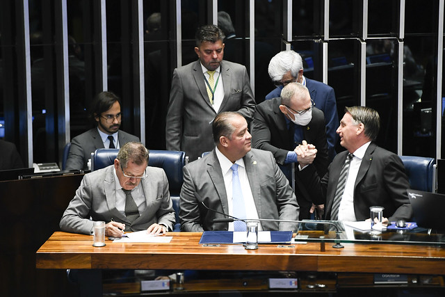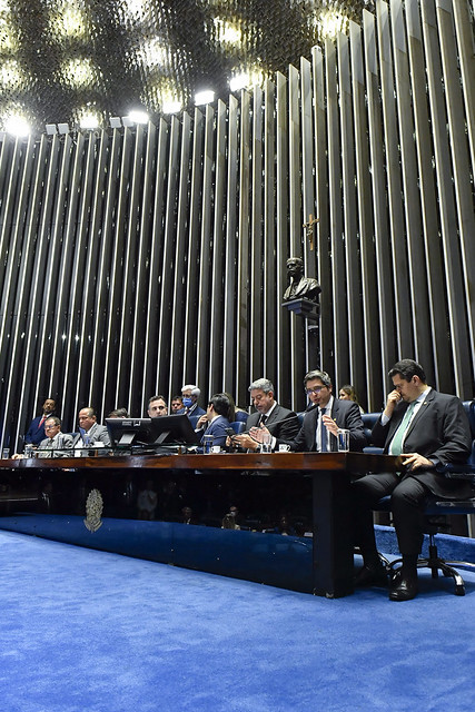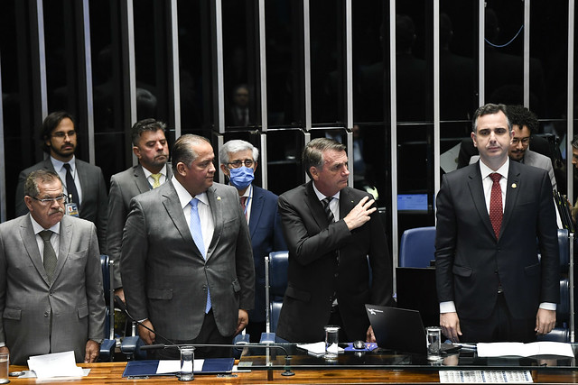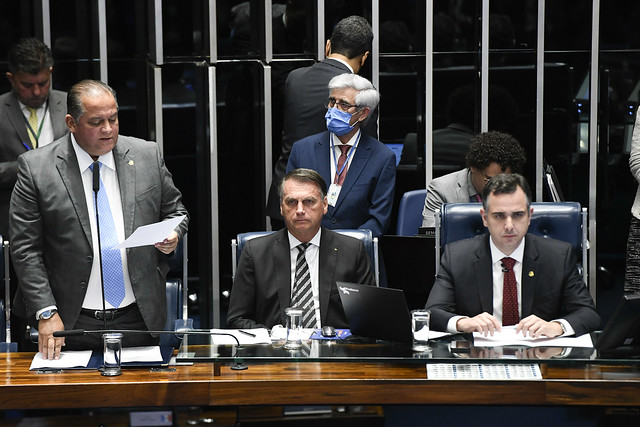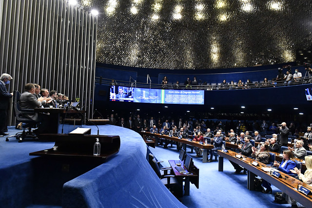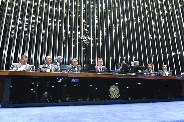 Plenário do Senado Federal durante sessão solene semipresencial do Congresso Nacional destinada à promulgação da Emenda Constitucional nº 123, referente à Proposta de Emenda à Constituição nº 1 e 15, de 2022, apensadas, que possibilitará ao governo gastar por fora do teto de gastos mais R$ 41,25 bilhões até o fim do ano para aumentar benefícios sociais, conceder ajuda financeira a caminhoneiros e taxistas, ampliar a compra de alimentos para pessoas de baixa renda e diminuir tributos do etanol; à promulgação da Emenda Constitucional nº 124, referente à PEC 11, de 2022, que institui o piso salarial nacional do enfermeiro, do técnico de enfermagem, do auxiliar de enfermagem e da parteira; e à promulgação da Emenda Constitucional n° 125, que "altera o art. 105 da Constituição Federal para instituir no recurso especial o requisito da relevância das questões de direito federal infraconstitucional".