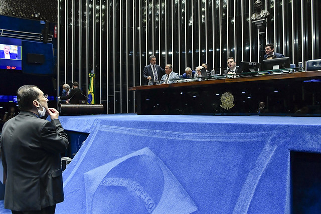 Plenário do Senado Federal durante sessão deliberativa ordinária semipresencial.