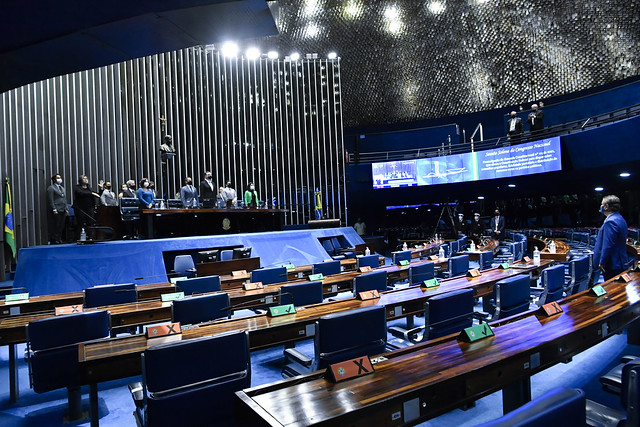 Plenário do Senado Federal durante sessão deliberativa ordinária semipresencial.