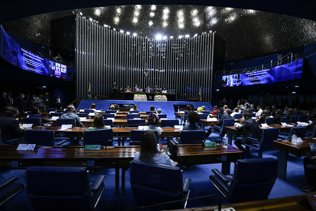 Plenário do Senado Federal durante sessão deliberativa ordinária semipresencial.