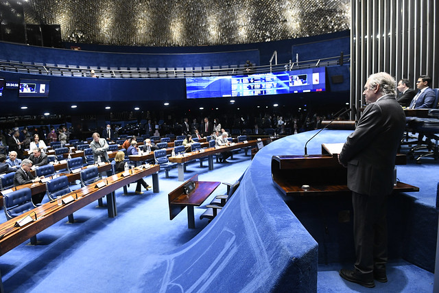 Plenário do Senado Federal durante sessão deliberativa ordinária semipresencial.