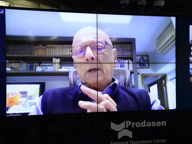 Sessão Deliberativa Remota (SDR) do Senado Federal realizada a partir da sala de controle da Secretaria de Tecnologia da Informação (Prodasen).