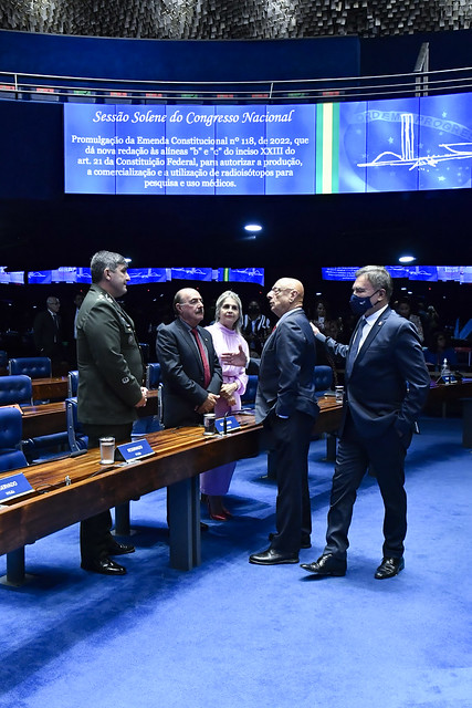 Plenário do Senado Federal durante sessão solene semipresencial do Congresso Nacional destinada a promulgação da Emenda Constitucional nº 118/2022, referente a Proposta de Emenda à Constituição nº 517/2010, que dá nova redação às alíneas "b" e "c" do inciso XXIII do art. 21 da Constituição Federal, para autorizar a produção, a comercialização e a utilização de radioisótopos para a pesquisa e uso médicos.