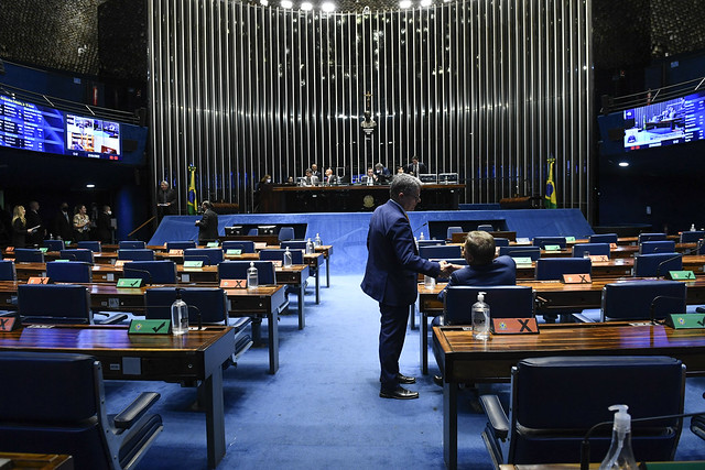 Plenário do Senado Federal durante sessão deliberativa ordinária semipresencial.