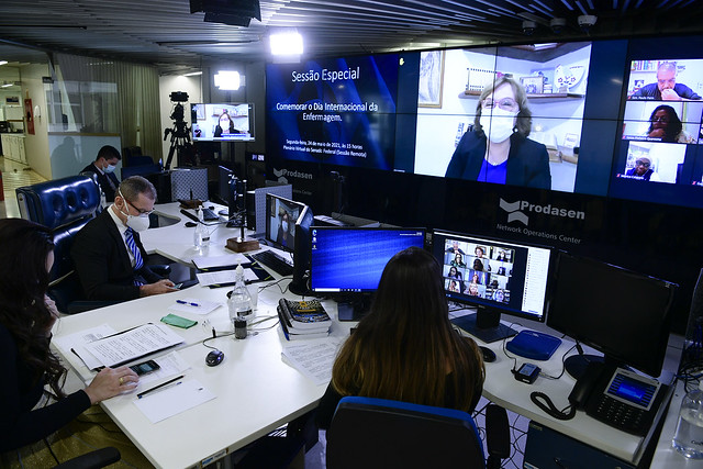 Sessão especial remota, realizada a partir da sala de controle da Secretaria de Tecnologia da Informação (Prodasen), destinada a comemorar o Dia Internacional da Enfermagem (12 de maio).