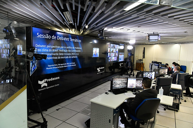 Sessão de debates temáticos, realizada a partir da sala de controle da Secretaria de Tecnologia da Informação (Prodasen), para debater a política de mudanças do clima, com foco nas perspectivas do mercado de carbono e na avaliação das Contribuições Nacionalmente Determinadas (NDCs, sigla em inglês para Nationally Determined Contributions).