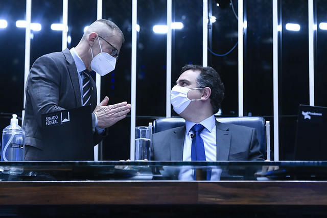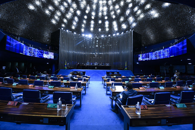 Plenário do Senado Federal durante sessão deliberativa ordinária semipresencial.