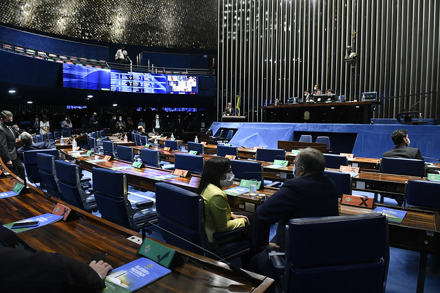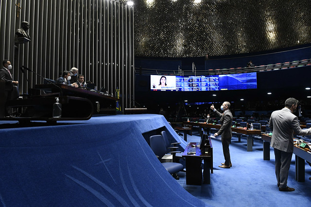 Plenário do Senado Federal durante sessão deliberativa ordinária semipresencial.