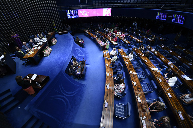 Plenário do Senado Federal durante sessão solene de premiações e condecorações, destinada à entrega do Diploma Bertha Lutz 2023.