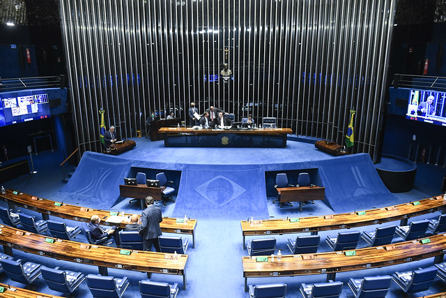Plenário do Senado Federal durante sessão deliberativa ordinária semipresencial.