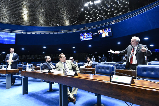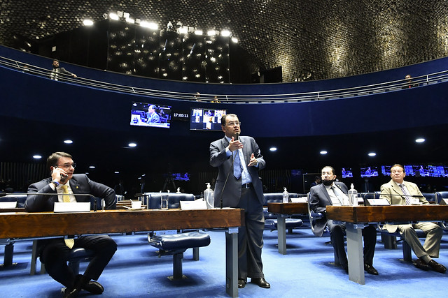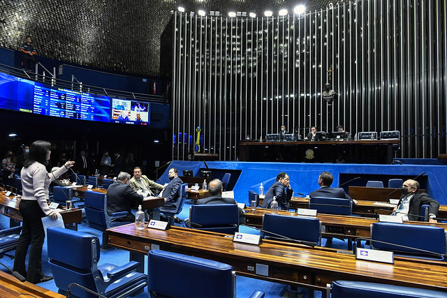 Plenário do Senado Federal durante sessão deliberativa ordinária semipresencial.