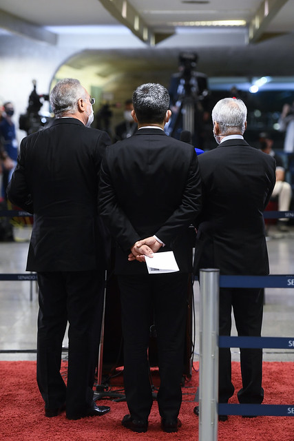 Membros da Comissão Parlamentar de Inquérito da Pandemia (CPIPANDEMIA) concedem entrevista coletiva, após depoimento do diretor do Instituto Butantan.