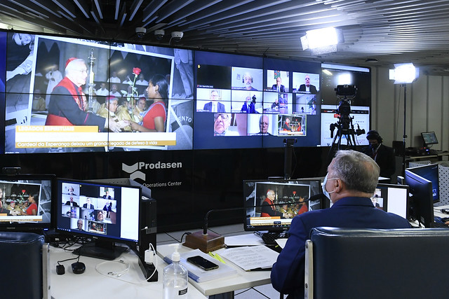 Sessão especial remota, realizada a partir da sala de controle da Secretaria de Tecnologia da Informação (Prodasen), destinada a homenagear o centenário de nascimento de Dom Paulo Evaristo Arns (1921-2016), frade franciscano e cardeal brasileiro.