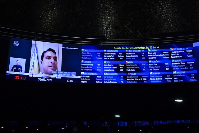 Plenário do Senado Federal durante sessão deliberativa ordinária semipresencial.
