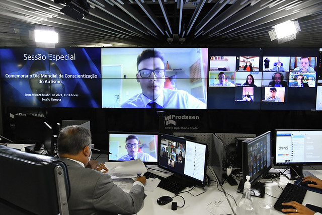 Sessão especial, realizada a partir da sala de controle da Secretaria de Tecnologia da Informação (Prodasen), destinada a comemorar o Dia Mundial da Conscientização do Autismo.