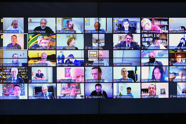 Sessão Deliberativa Remota (SDR) do Senado Federal realizada a partir da sala de controle da Secretaria de Tecnologia da Informação (Prodasen).
