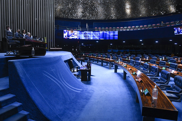Plenário do Senado Federal durante sessão deliberativa ordinária semipresencial.