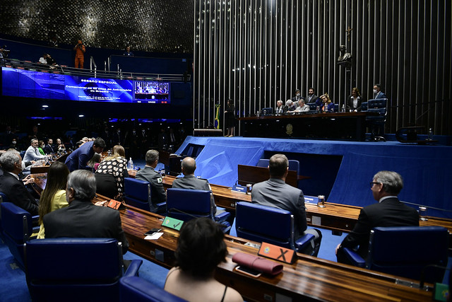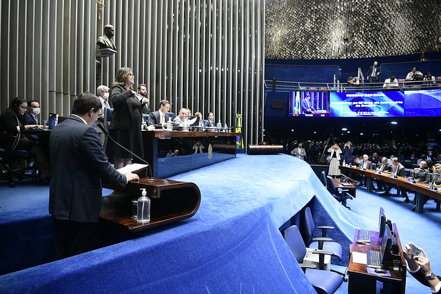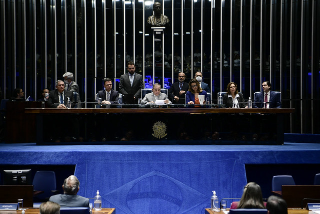 Plenário do Senado Federal durante sessão especial semipresencial destinada a comemorar 62 anos de Brasília. A capital federal foi inaugurada pelo presidente Juscelino Kubitschek em 21 de abril de 1960.