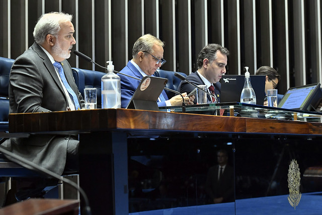 Plenário do Senado Federal durante sessão deliberativa ordinária semipresencial.