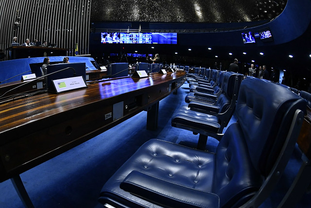 Plenário do Senado Federal durante sessão deliberativa ordinária semipresencial.