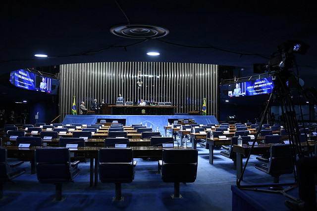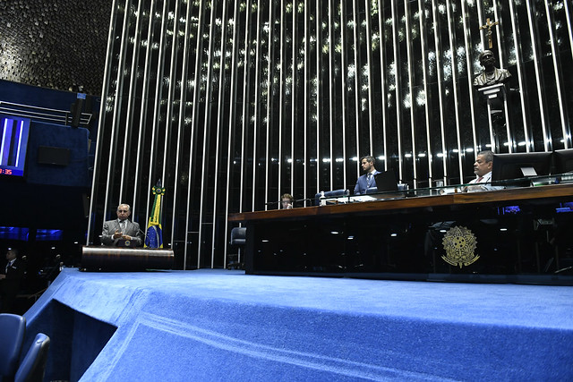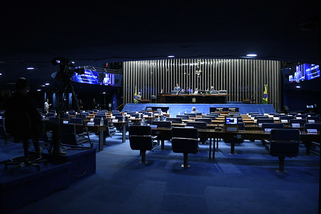 Plenário do Senado Federal durante sessão especial destinada a celebrar o Dia Nacional do Policial e do Bombeiro.