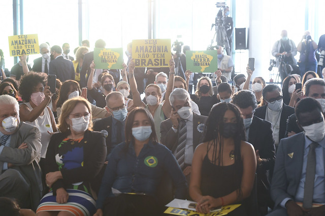 Senado Federal realiza audiência no Salão Negro para receber o Movimento 342 Amazônia, parlamentares e um grupo de artistas. O objetivo é discutir projetos de lei que podem impactar o meio ambiente, como as propostas que facilitam a mineração em terras indígenas, e que flexibilizam as regras de licenciamento e a ampliação do número de agrotóxicos no Brasil.