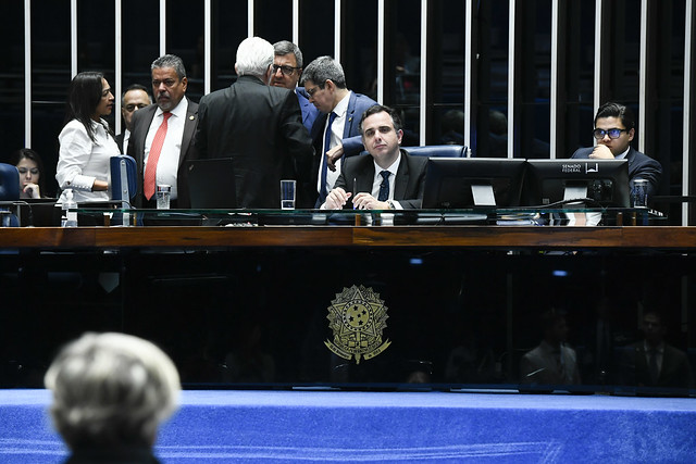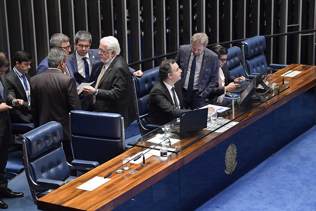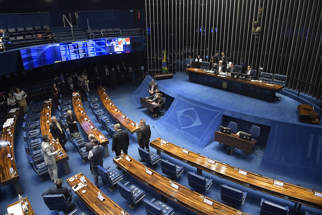 Plenário do Senado Federal durante sessão deliberativa extraordinária semipresencial.